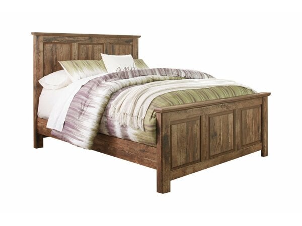 The huntress has found her next prized possession in the largely striking Blaneville queen panel bed. Burnished brown finish over