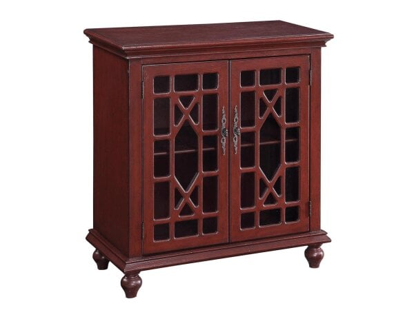 This simply designed cabinet is made special with its bright and cheerful Esnon Texture Red painted finish. The two doors