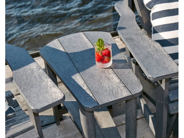 A great conversation table between Adirondack chairs. Handy to use for drinks or plates. These tables are the perfect complement