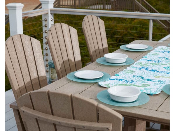 The new Harvest Collection blends both traditional and contemporary elements to comfortably seat 6-8 people in style. Featuring matching benches