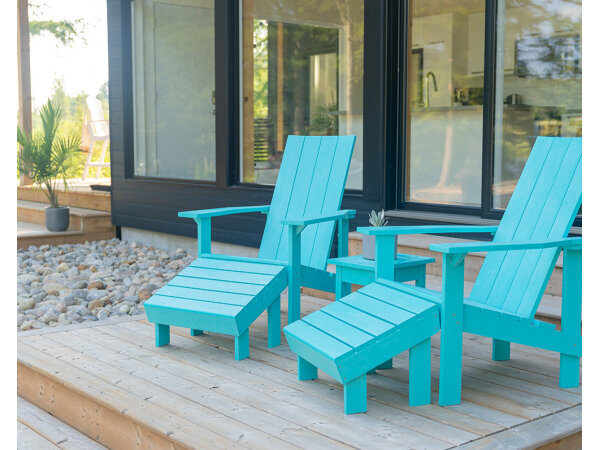 A modern take of the classic Adirondack. With its custom moulded arms, contoured back, and sleek profile, you don’t have