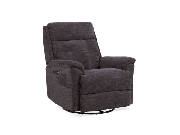 Sophisticated Fabric Power Swivel Gliding Recliner with Power Headrest & Lumbar in Steel