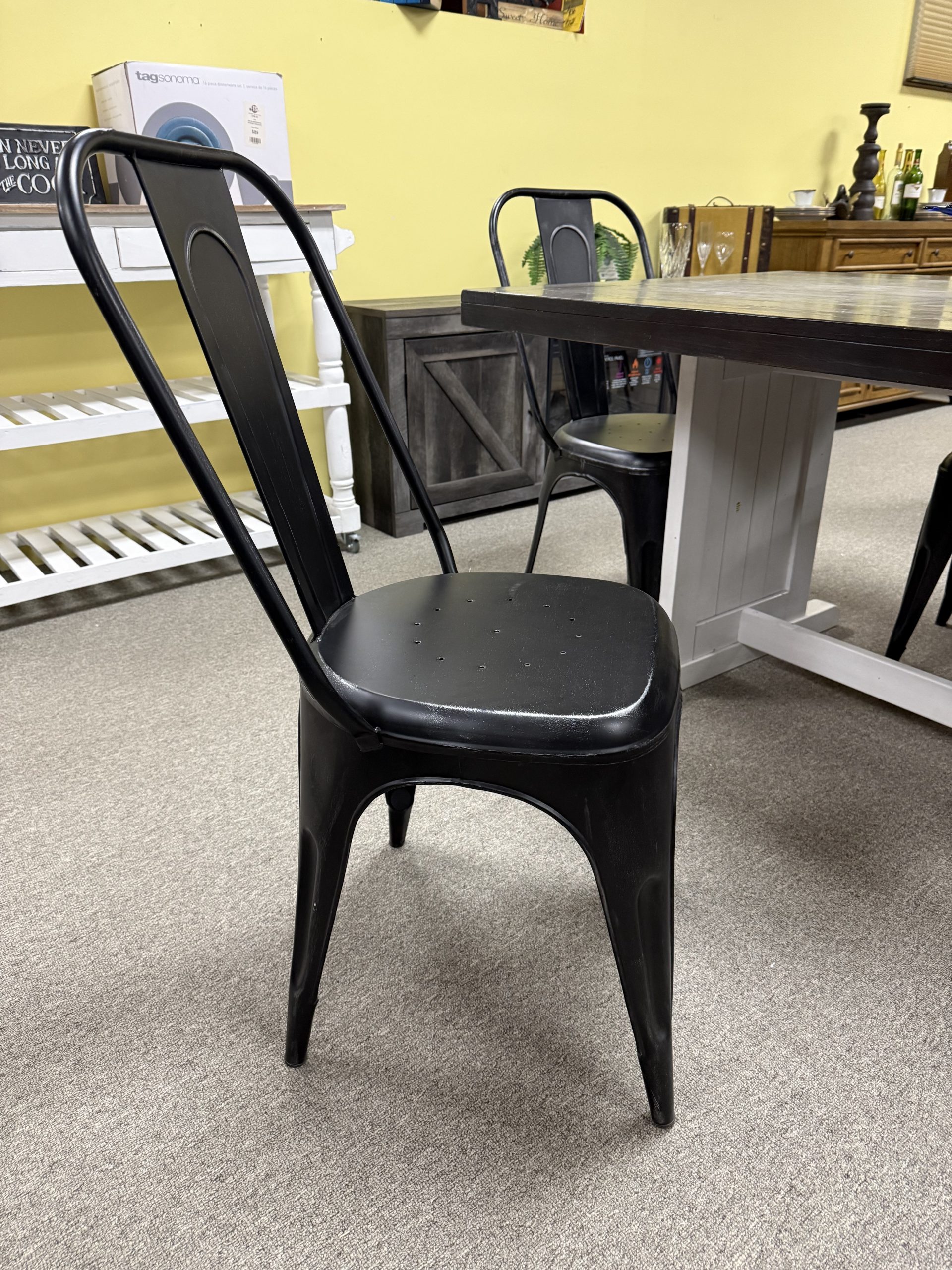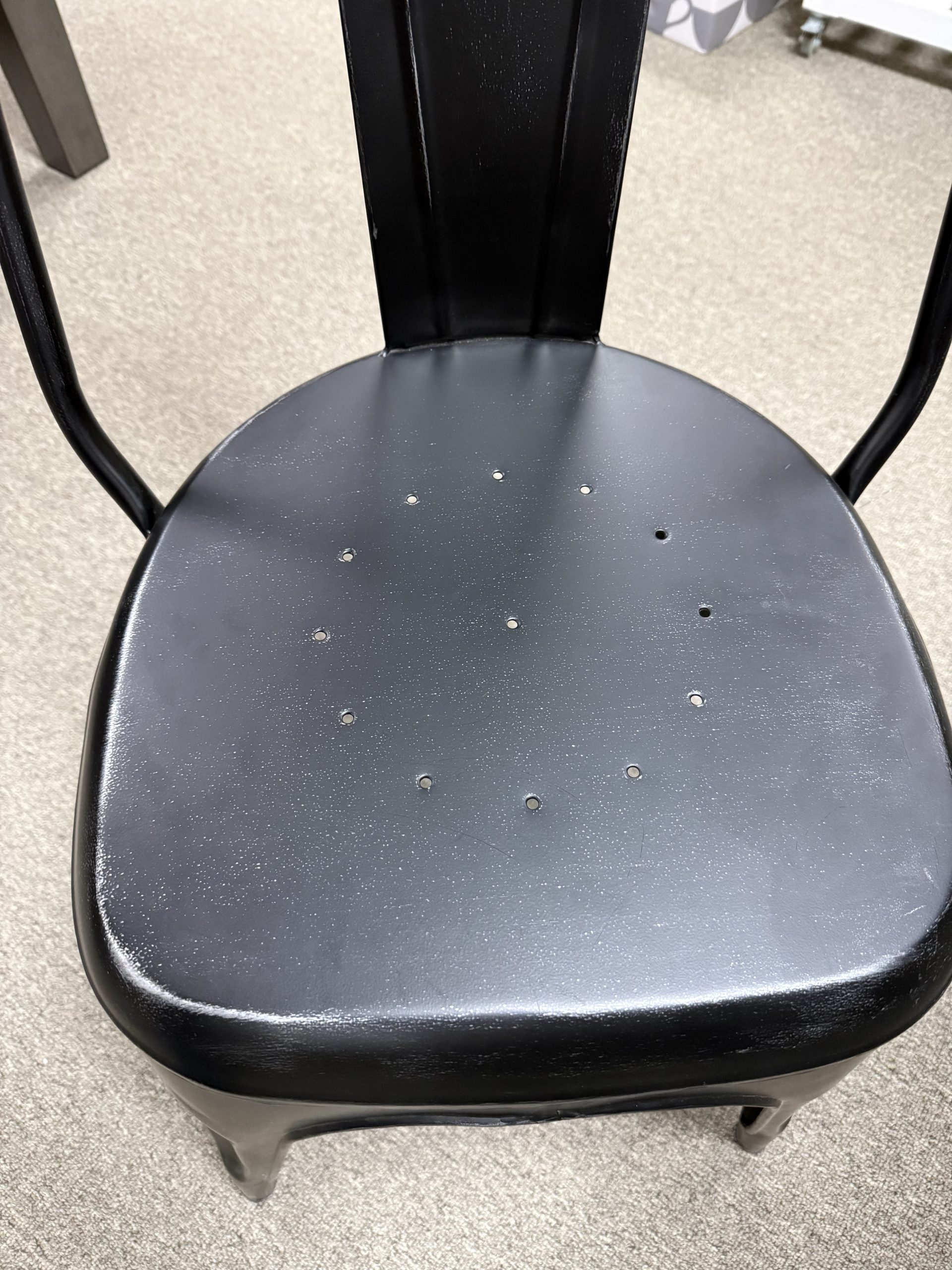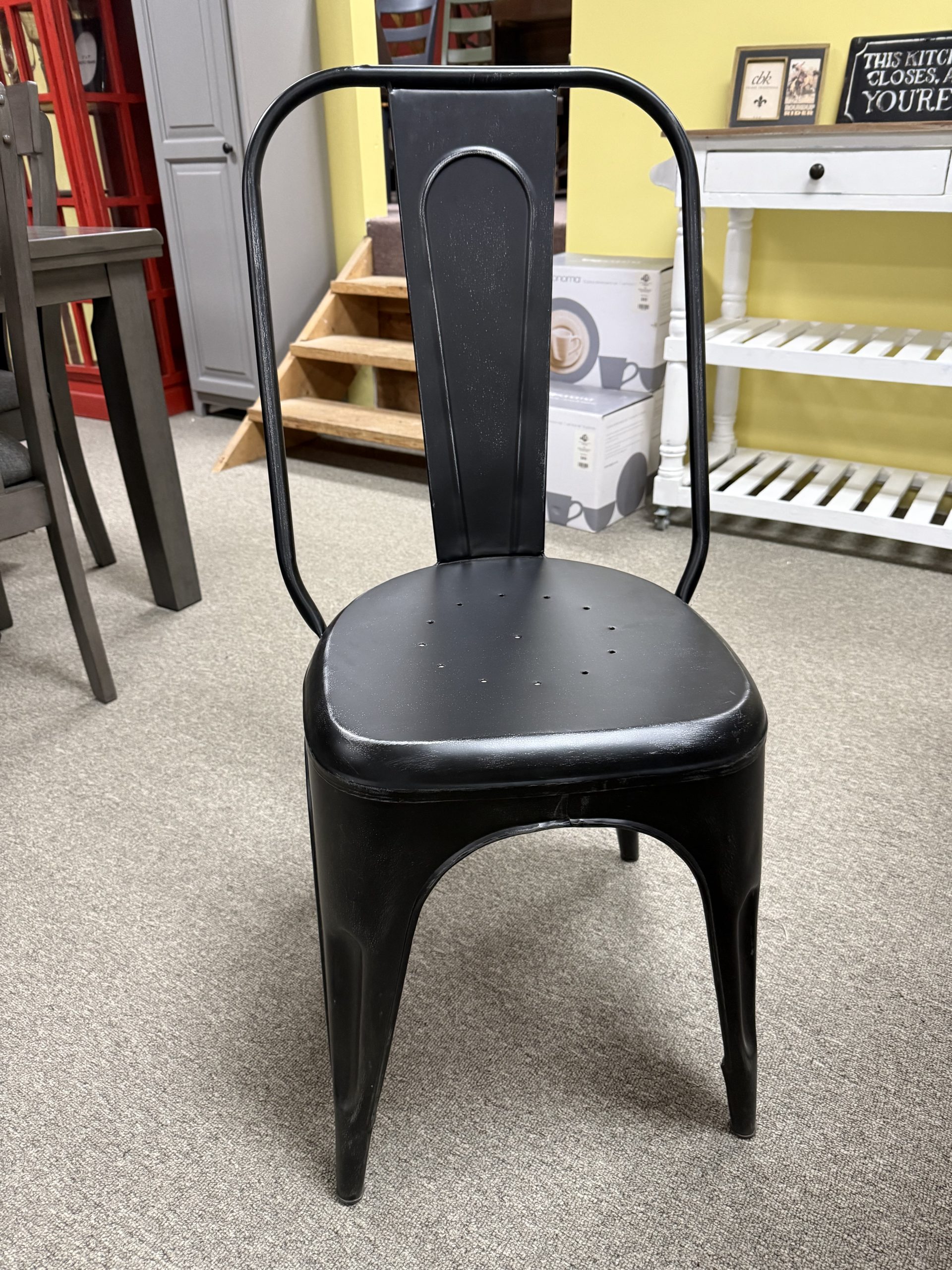 A sleek industrial-styled accent chair makes a powerful statement. The simple design is created in inkwell black and sports simple curves, tapered legs, and routed detailing. This chair not only provides sturdy seating, but it becomes a sculptural statement when not in use.