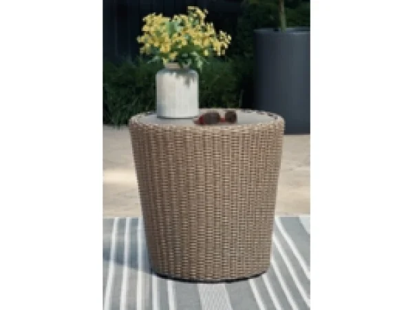 Series FeaturesResin wicker on an aluminum frame. Stainless steel hardware. Porcelain top umbrella table. Umbrella hole. Nuvella high performance fabrics. P792-835 has Nuvella high performance light gray fabric. Includes two throw pillows.